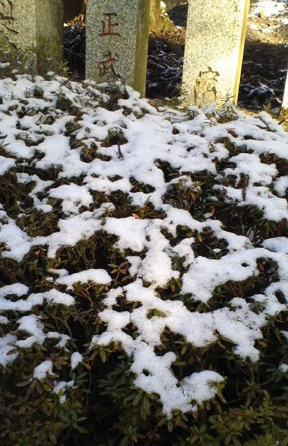 箱根神社の境内に残る雪。